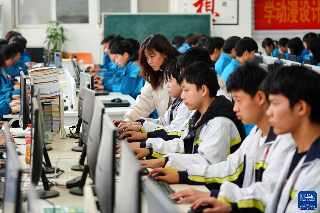3月14日,河北省巨鹿縣職業(yè)技術(shù)教育中心影視動(dòng)漫制作專(zhuān)業(yè)的老師在指導學(xué)生進(jìn)行電腦操作。