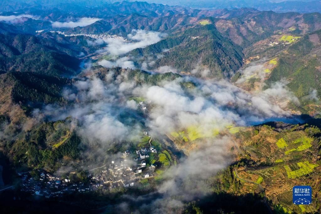 安徽歙縣:云繞山巒春色美