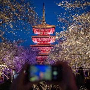 近日,湖北武漢東湖櫻園的櫻花競相綻放,吸引眾多游客前來(lái)踏青賞花,樂(lè )享春光。