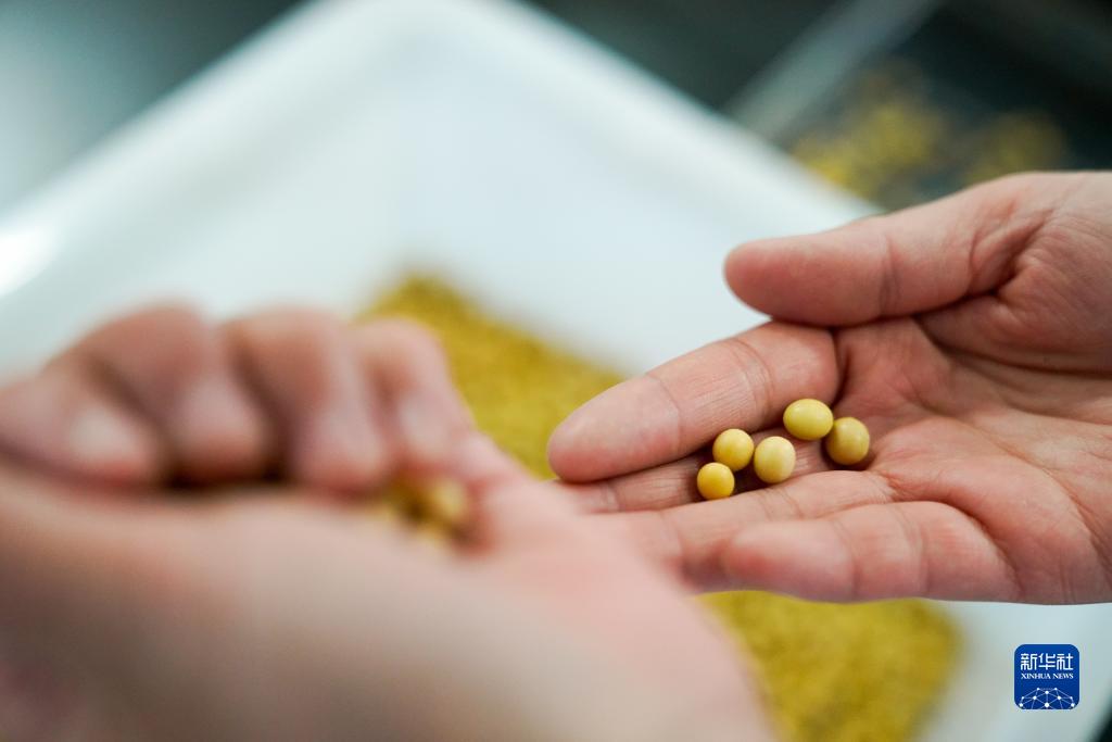 3月14日,在北大荒集團建設農場(chǎng)有限公司農業(yè)科技園區試驗室,孫凡紅在進(jìn)行大豆品種發(fā)芽試驗。