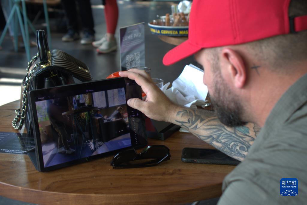 3月12日,在“西南偏南”大會(huì )和藝術(shù)節上,一名參觀(guān)者正在體驗裸眼3D平板電腦。