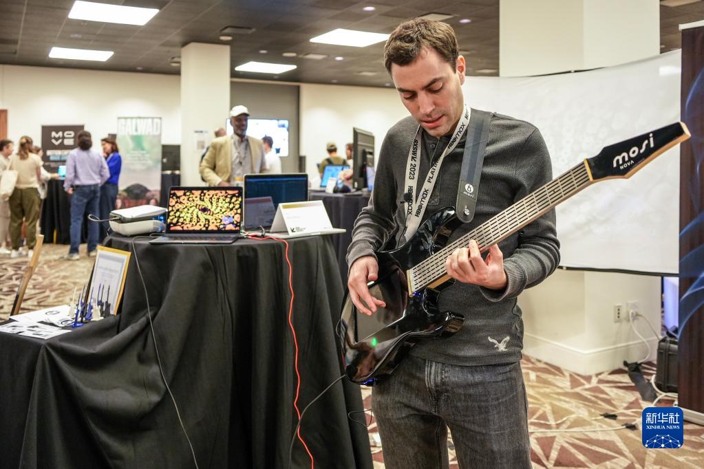 3月11日,在“西南偏南”大會(huì )和藝術(shù)節上,一位參與者正在體驗音樂(lè )合成控制器“Mosi”。