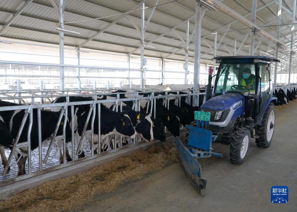 3月15日,秦皇島市撫寧區留守營(yíng)鎮一家奶牛養殖企業(yè)的工人在牛舍內工作。