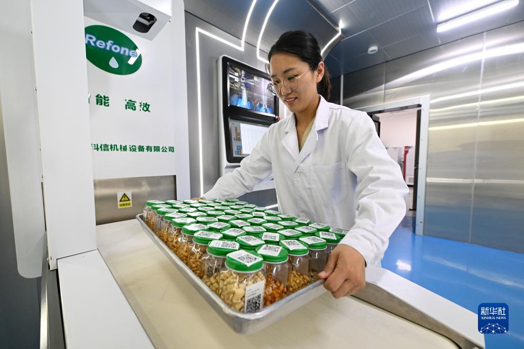 3月14日,在天津市農業(yè)科學(xué)院種質(zhì)資源與生物技術(shù)研究所,科研人員將一盤(pán)玉米種質(zhì)資源入庫。