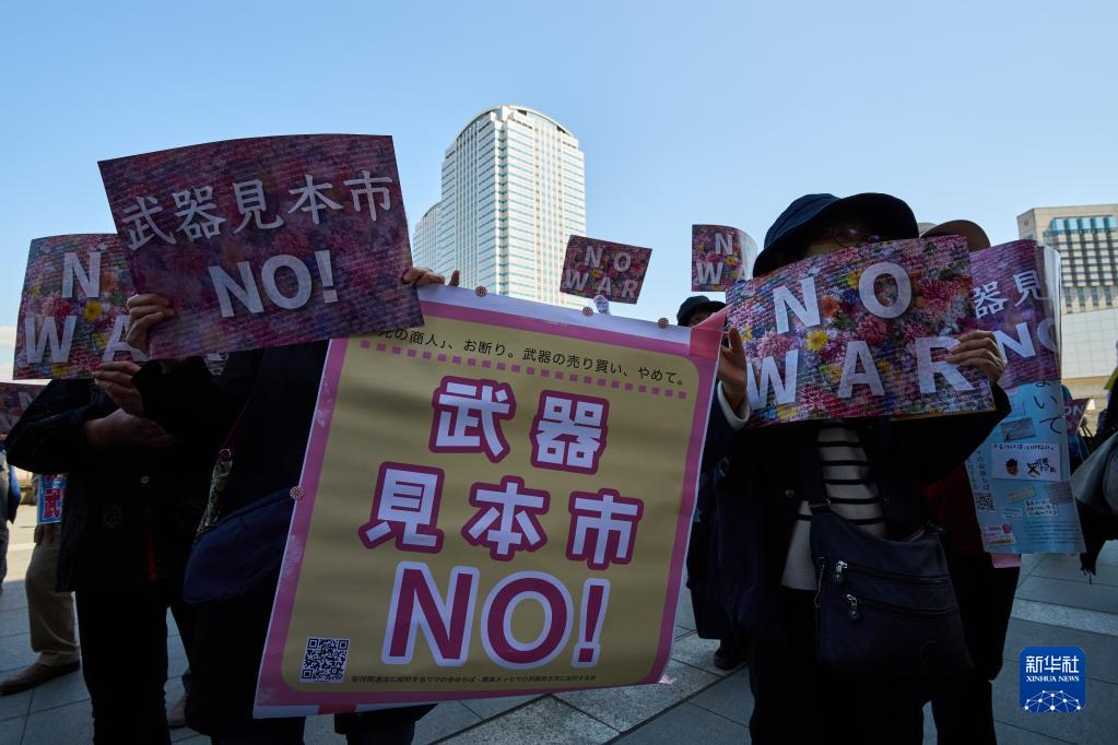 日本2023防務(wù)與安全設備國際博覽會(huì )15日在日本千葉縣幕張會(huì )展中心開(kāi)幕。300多名民眾聚集在會(huì )展中心門(mén)前,強烈抗議日本強化武器交易的行徑。