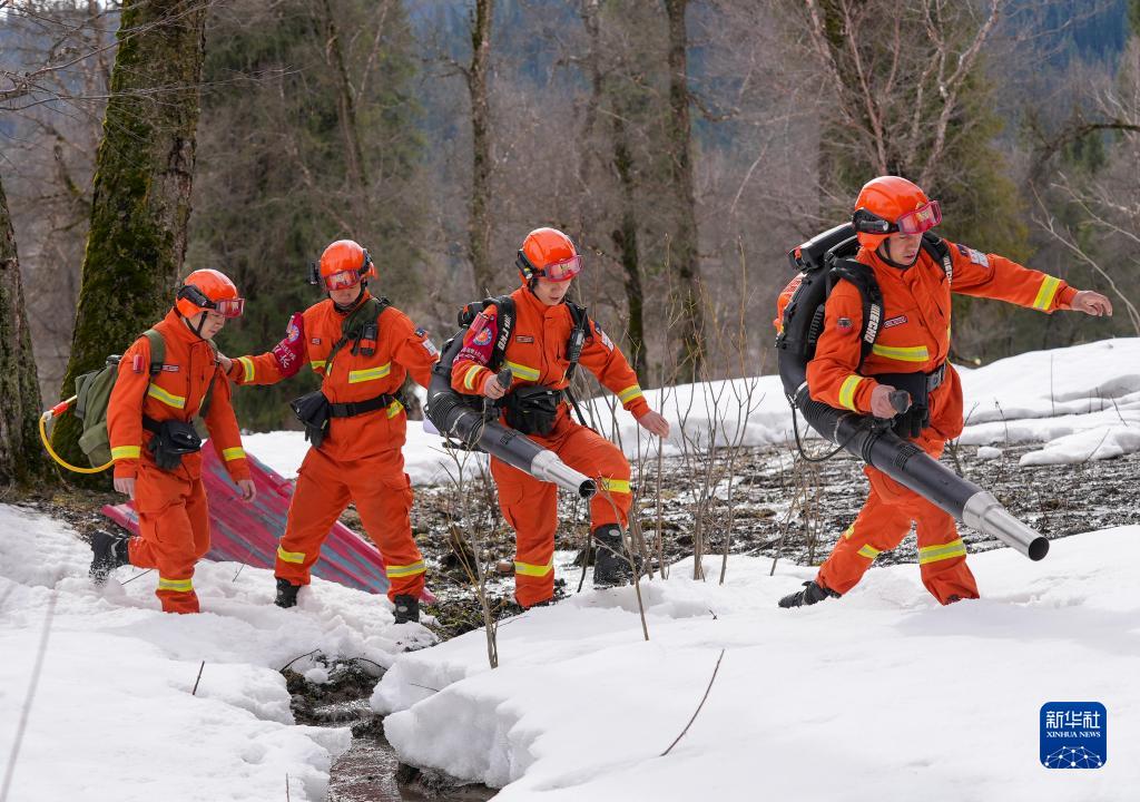 3月15日,鞏留縣森林消防大隊指戰員在庫爾德寧林區內行進(jìn)。