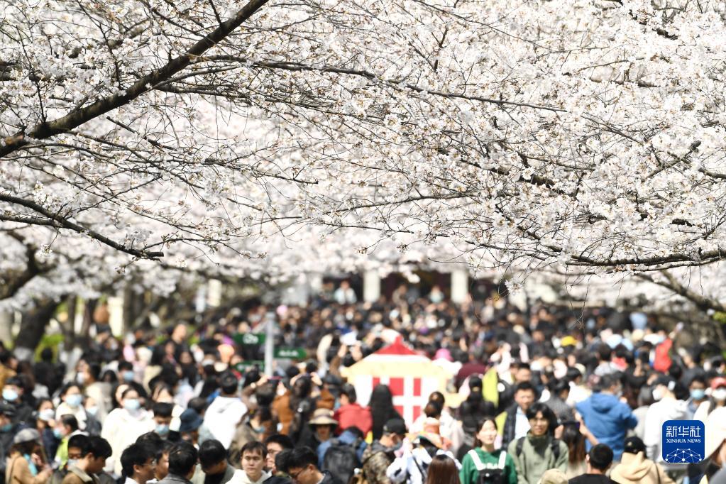 3月16日,人們在南京林業(yè)大學(xué)櫻花大道上賞花游玩。