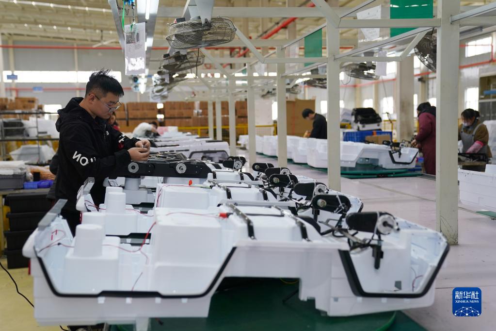 3月16日,工人在河北省邢臺經(jīng)濟開(kāi)發(fā)區一家外貿企業(yè)生產(chǎn)車(chē)間組裝童車(chē)產(chǎn)品。