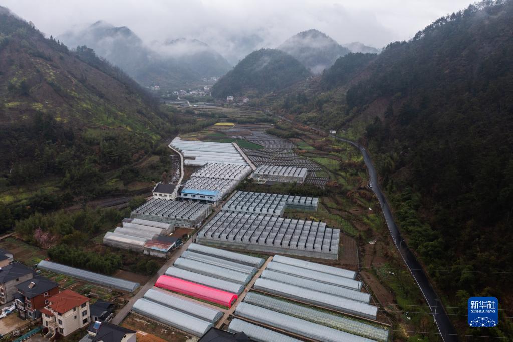 3月17日,空中俯瞰杭州市臨安區清涼峰鎮的九都村蔬菜基地(無(wú)人機照片)。