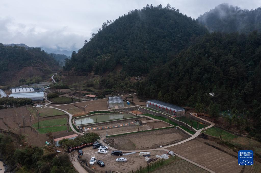3月17日,空中俯瞰陳萍梅承包的位于清涼峰鎮頰口村的家庭農場(chǎng)(無(wú)人機照片)。陳萍梅承包了100余畝土地種植無(wú)公害的瓜果蔬菜,同時(shí)還開(kāi)展農事體驗和鄉村旅游。