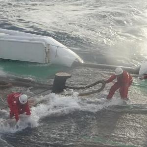 “南海救115”抵達受困貨船附近施救(3月4日攝)。