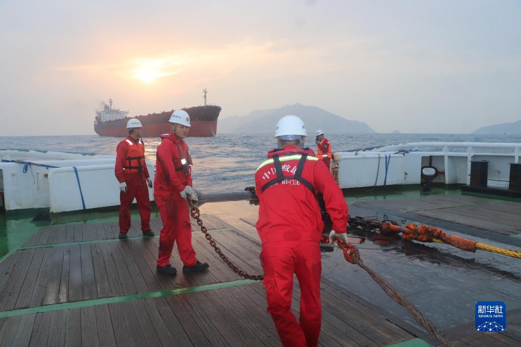 歷經(jīng)10日的海上拖帶,“南海救115”船成功將受困貨船拖救至廣東珠江口水域(3月13日攝)。