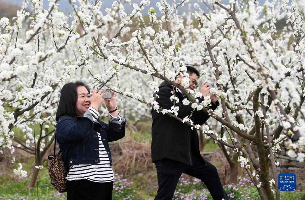 眼下,廣西金秀瑤族自治縣忠良鄉巴勒村李花綻放,吸引游客前來(lái)踏春賞花。