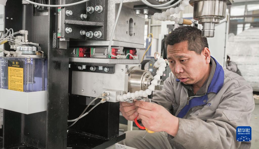3月16日,山東省鄒平市乾正數控機械有限公司工人在調試智能窗扇設備生產(chǎn)線(xiàn)。