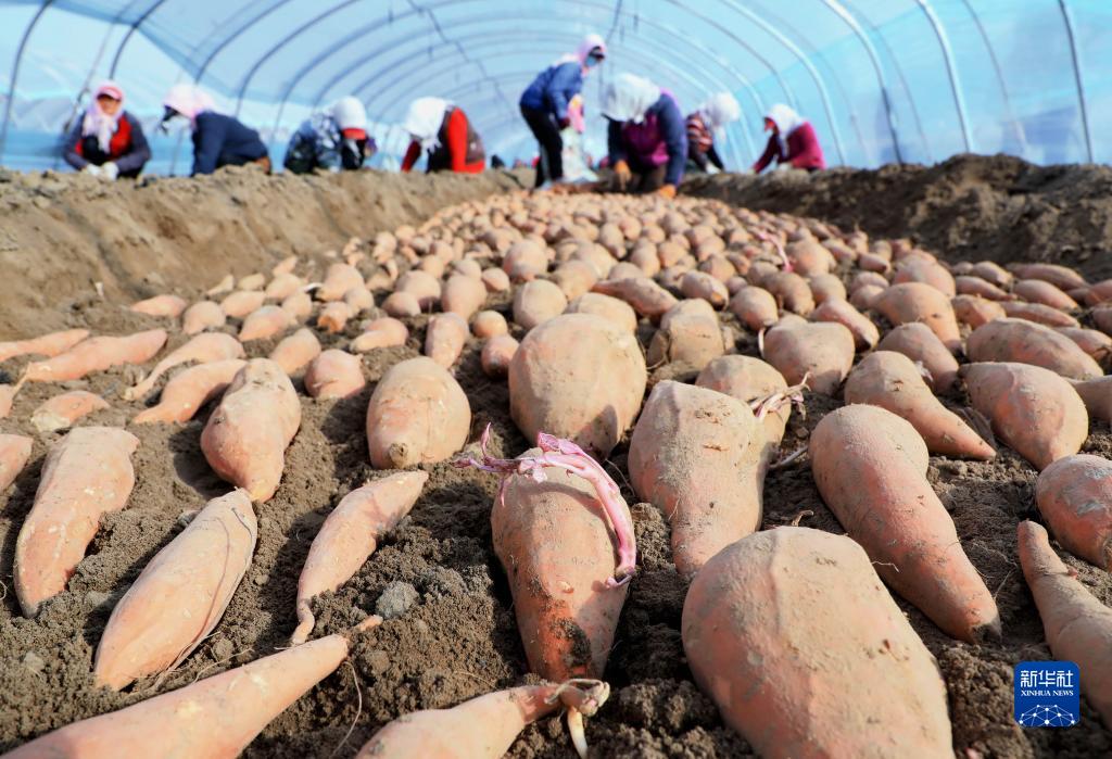 3月17日,灤南縣東黃坨鎮紅薯種植專(zhuān)業(yè)合作的社員在往育苗床上擺放紅薯種薯。