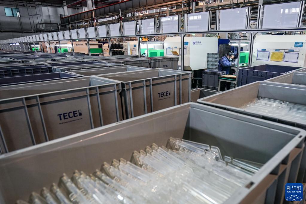工人在位于太倉市高新區的帝希潔具系統(蘇州)有限公司生產(chǎn)車(chē)間內進(jìn)行加工作業(yè)(3月16日攝)。