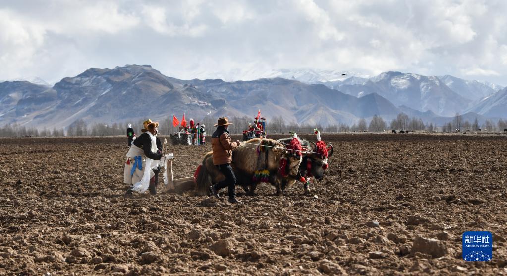在西藏林周縣強嘎村的春耕儀式上,古老的“二牛抬杠”耕作方式已僅具象征意義(3月16日攝)。