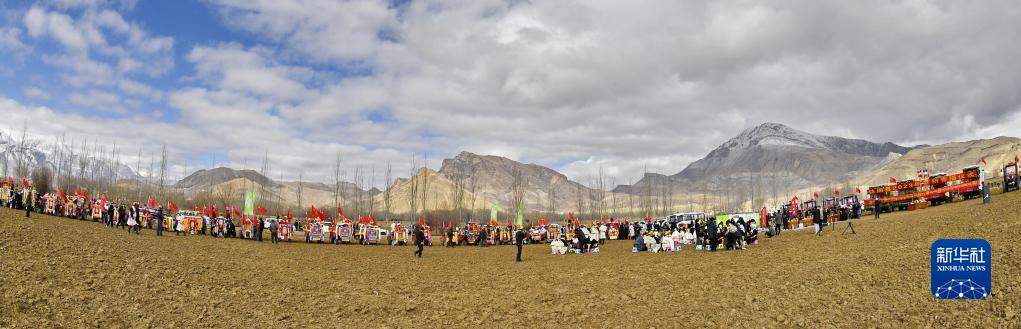 在西藏林周縣強嘎村的春耕儀式上,農業(yè)機械集體亮相(3月16日攝)。