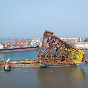 恩平20-4平臺導管架啟航出海