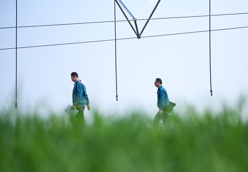 “這個(gè)噴頭換過(guò)了,你登記好?!痹诤幽鲜●v馬店市西平縣高標準農田示范區的麥田里,河南水投柏農產(chǎn)業(yè)發(fā)展有限公司運營(yíng)管理部負責人劉亞輝一邊擰好噴灌機的新噴頭,一邊叮囑一起巡檢的王英凡。