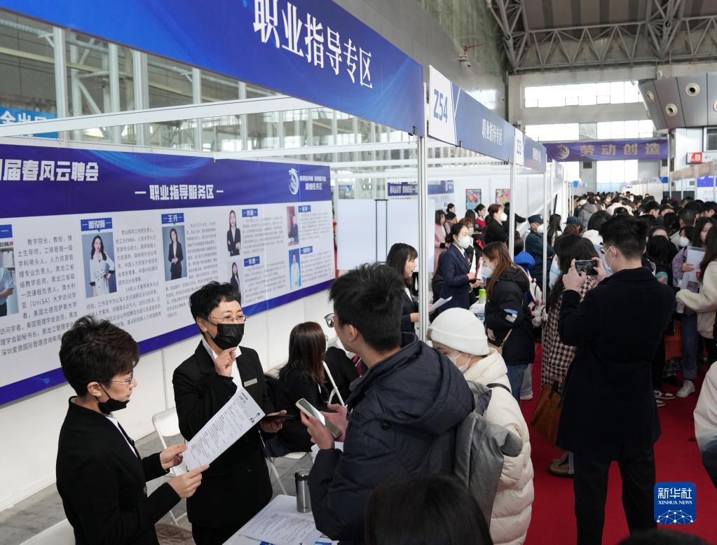 3月18日,求職者在招聘會(huì )的職業(yè)指導專(zhuān)區進(jìn)行咨詢(xún)。