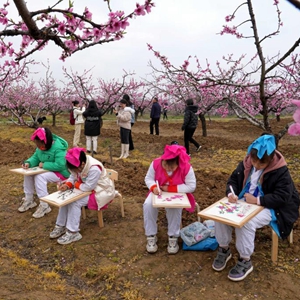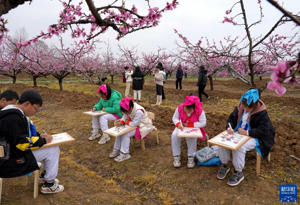 3月18日,小朋友在全椒縣二郎口鎮浦北村桃園寫(xiě)生。