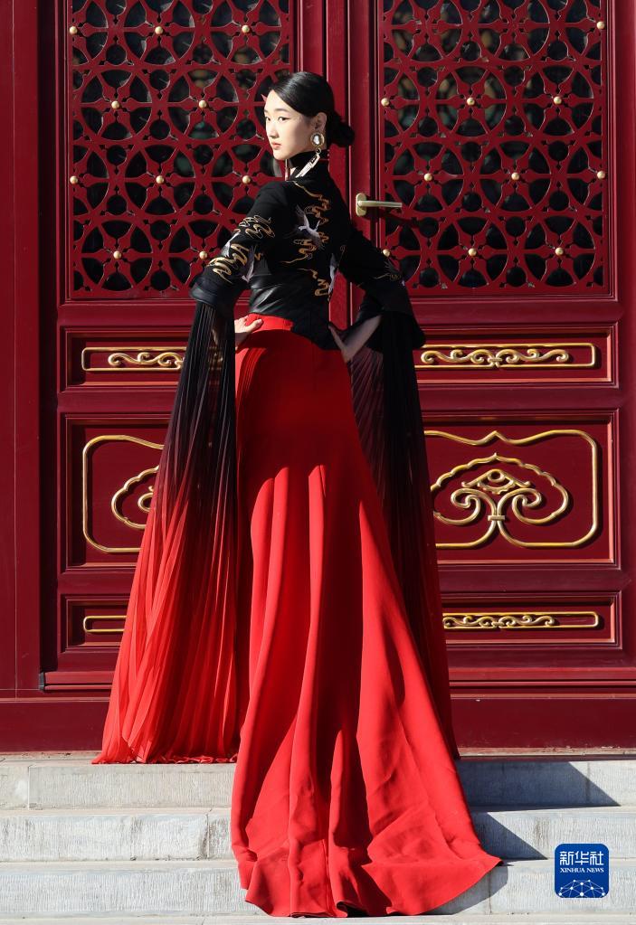 3月18日,模特在展示知名時(shí)裝設計師熊英設計的具有非遺元素的時(shí)裝。