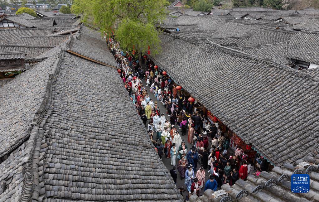 3月18日,漢服愛(ài)好者巡游閬中古城。