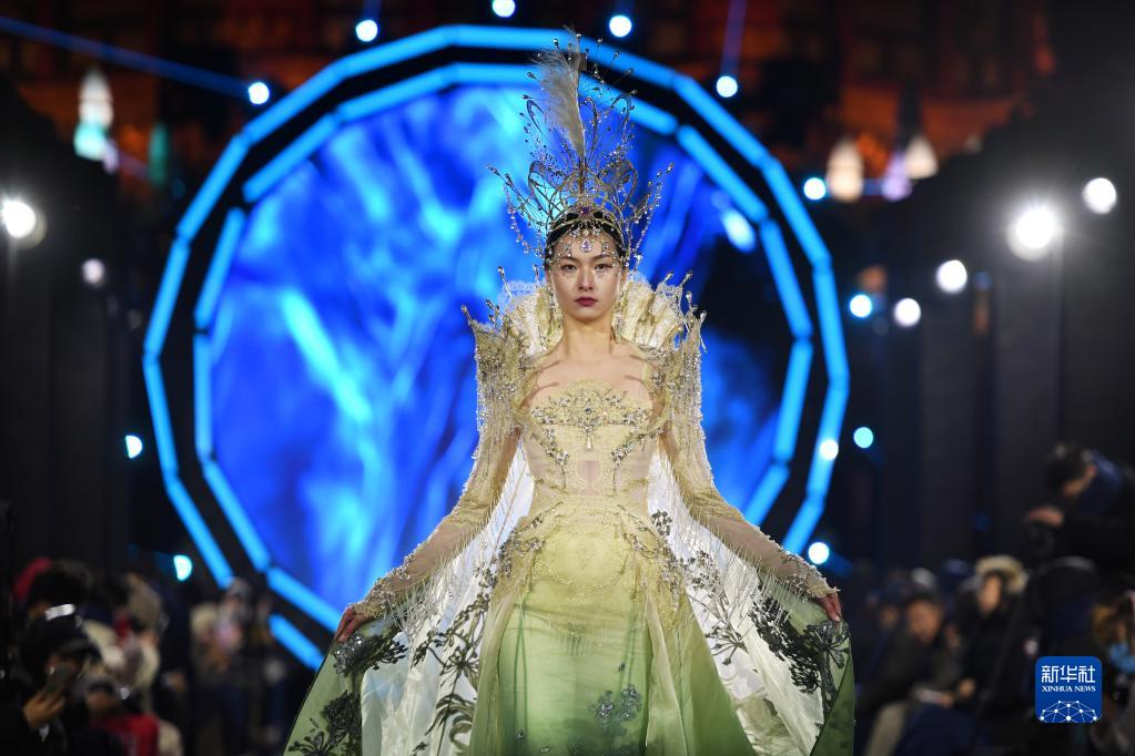 3月18日,模特展示包含傳統文化元素的服裝。
