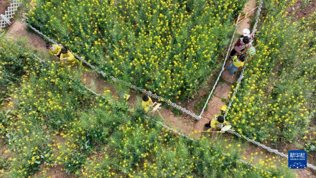 春暖花開(kāi)時(shí)節,四川省遂寧市大英縣河邊鎮幼兒園組織孩子們在油菜花海中賞花、畫(huà)花,感受春天的美好。