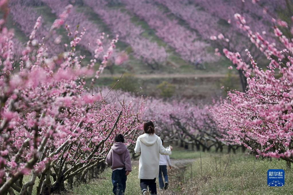 3月18日,游人在江蘇省句容市茅山鎮丁莊村觀(guān)賞桃花。