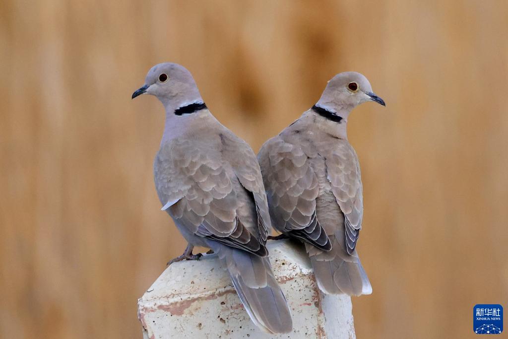 兩只灰斑鳩在新疆博斯騰湖畔休憩(3月17日攝)。