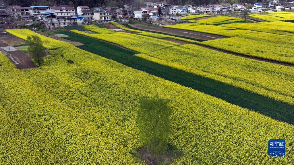 陜西省漢中市寧強縣燕子砭鎮島灣村盛開(kāi)的油菜花海(3月18日攝,無(wú)人機照片)。