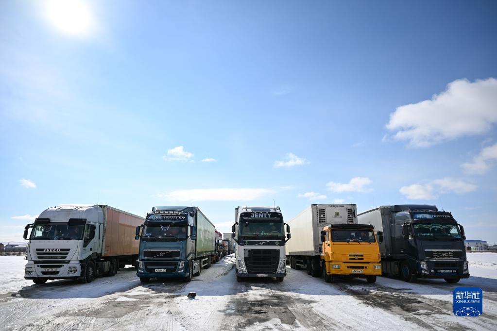 3月15日在滿(mǎn)洲里公路口岸拍攝的等待出境的貨車(chē)。