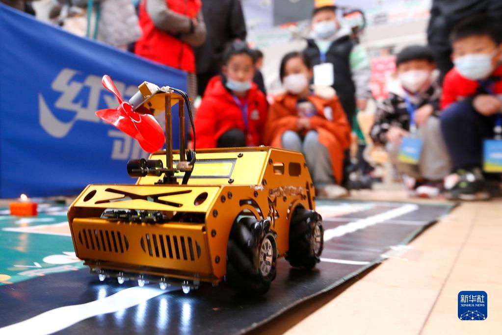 3月19日,青島市即墨區的學(xué)生在參加“智能車(chē)應急救援”項目比賽。