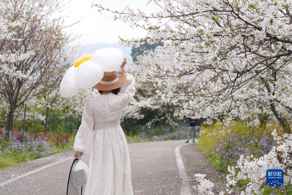3月19日,游人在重慶市北碚區澄江鎮五一村“櫻花橘香”農業(yè)公園觀(guān)賞櫻花。