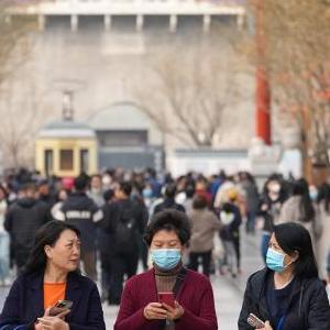 3月19日,游客在北京前門(mén)大街游覽。