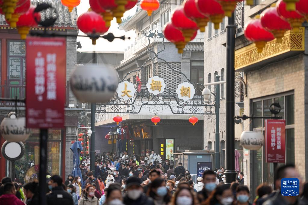 當日,北京前門(mén)大街商圈游人如織,眾多市民游客在這里參觀(guān)游覽。