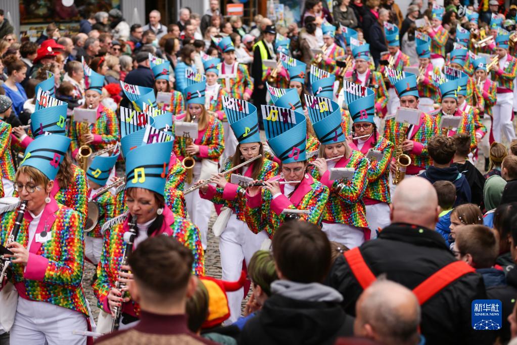 3月19日,在比利時(shí)東部的小城斯塔沃洛,樂(lè )手在狂歡節游行上演奏。