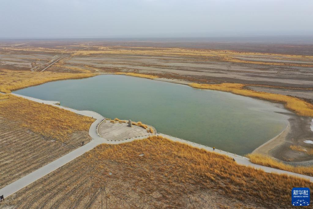 這是在新疆吐魯番市高昌區拍攝的艾丁湖(3月7日攝)。冬季不需要灌溉時(shí),坎兒井的水用于生態(tài)補水,匯集到艾丁湖。