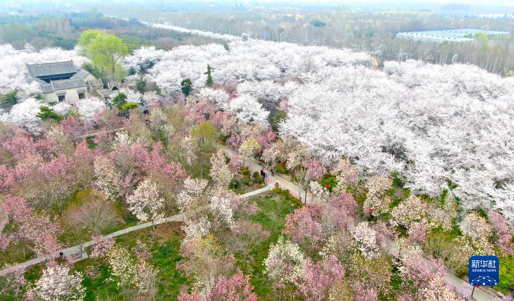 這是3月19日在河南省許昌市鄢陵縣拍攝的唐韻櫻花園(無(wú)人機照片)。