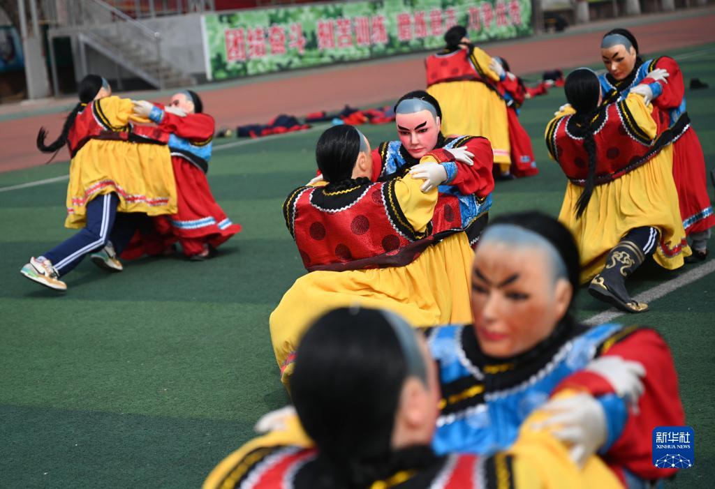 3月20日,隆化縣職教中心學(xué)生在練習國家級非遺項目“二貴摔跤”。