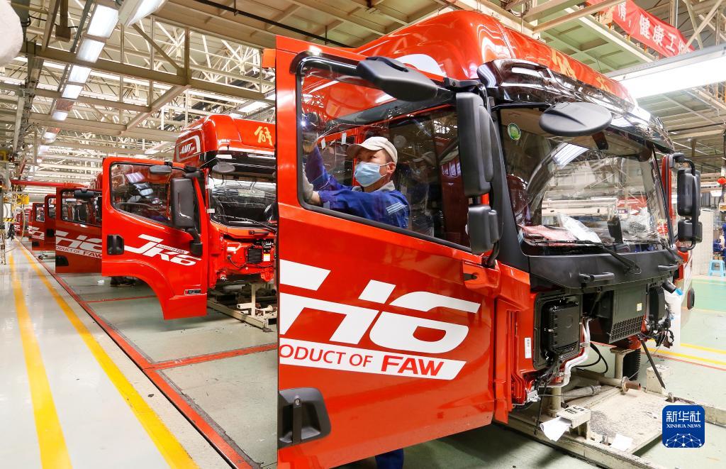 3月20日,在位于山東省青島市即墨區的一汽解放青島汽車(chē)有限公司總裝車(chē)間,工人在組裝汽車(chē)。
