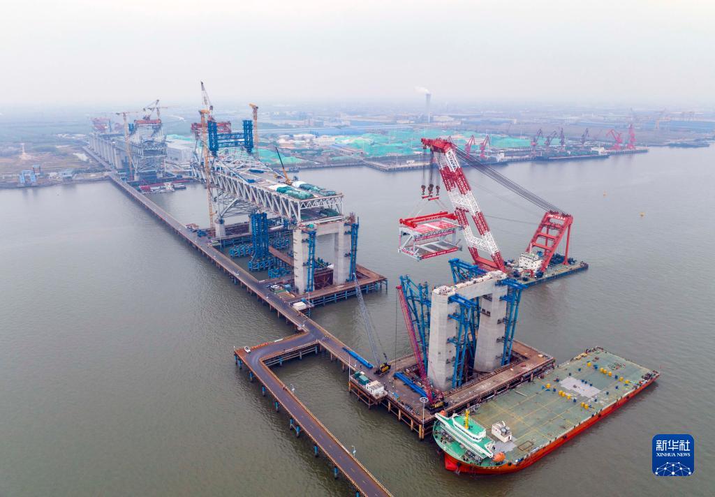 常泰長(cháng)江大橋主航道橋鋼桁梁架設全面展開(kāi)