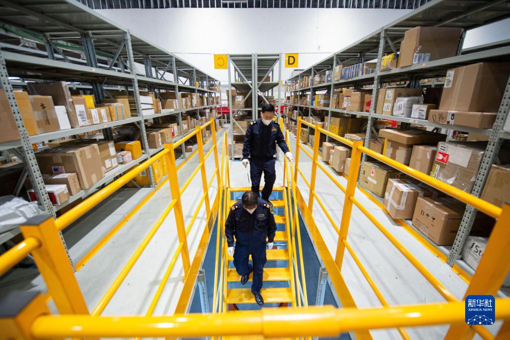 3月20日,首都機場(chǎng)海關(guān)關(guān)員在一家快件企業(yè)的海關(guān)監管倉庫巡查。