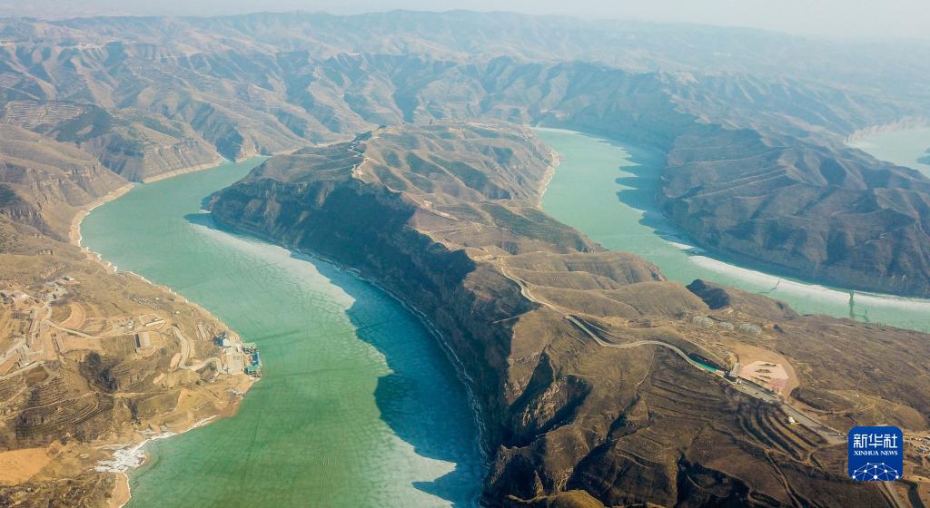 黃河老牛灣位于山西省和內蒙古交界處,我國黃土高原滄桑的地貌特征在這里彰顯。初春時(shí)節,黃河老牛灣段部分水面依然冰封,從空中俯瞰呈現出蒼茫雄渾的景象。
