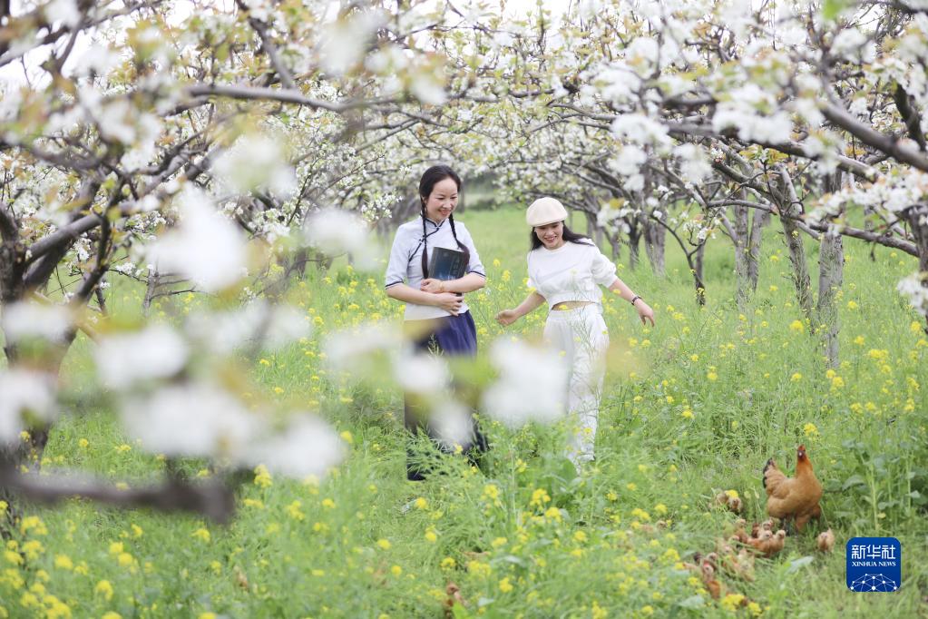 3月21日,游人在湖南省永州市道縣大坪鋪農場(chǎng)的梨園賞花游玩。