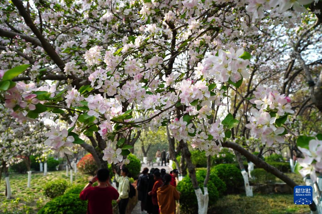 近日,泉城濟南氣溫回升,市區內海棠花競相綻放,美不勝收,吸引不少市民和游客前來(lái)賞花拍照。