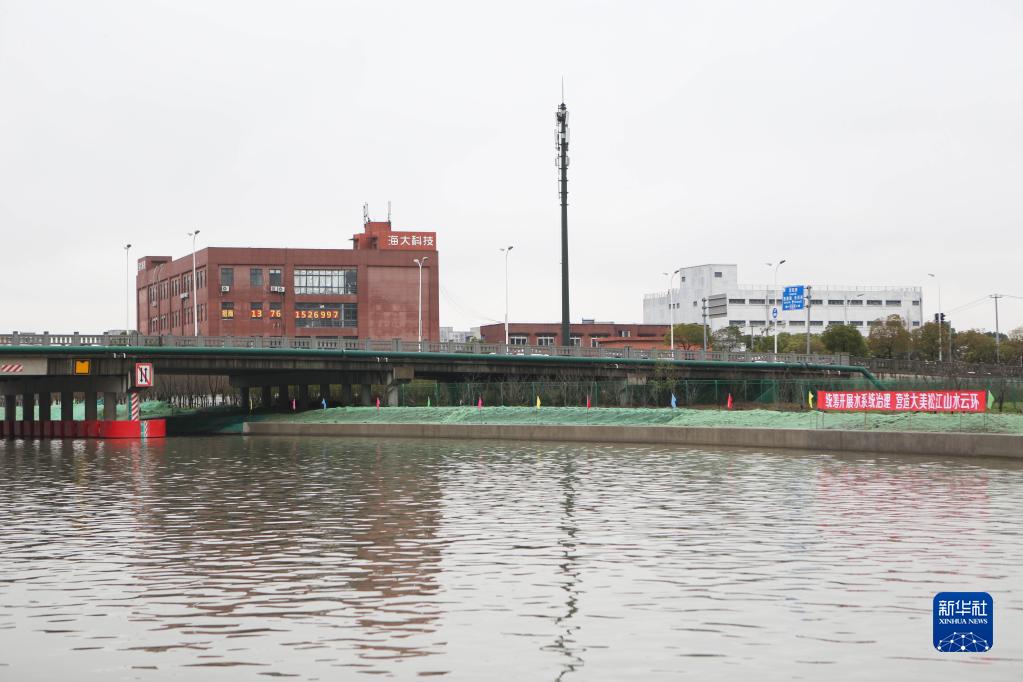 3月21日拍攝的位于洞涇港的松江新城綠環(huán)水脈建設現場(chǎng)。