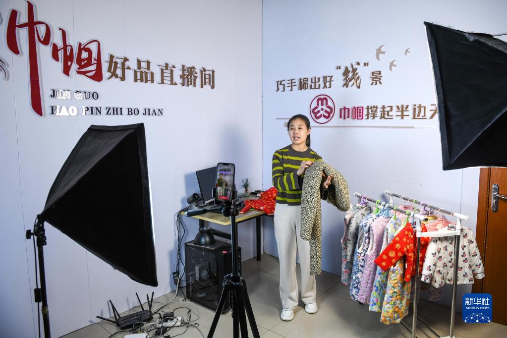 3月21日,沂源縣棉花窩巾幗共富示范基地負責人陸珍華在進(jìn)行電商直播,拓展銷(xiāo)售渠道。